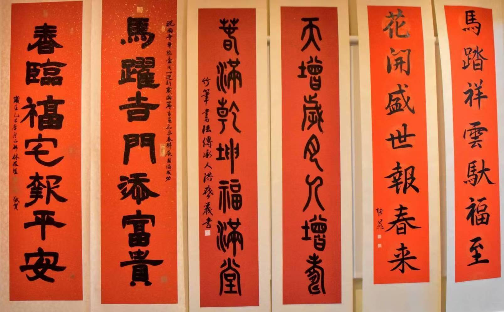 还有台湾著名竹笔书法传承人洪啓义,特别用中华传统竹笔书写春联,不仅是一种艺术的实践更承载着文化传承的深意。