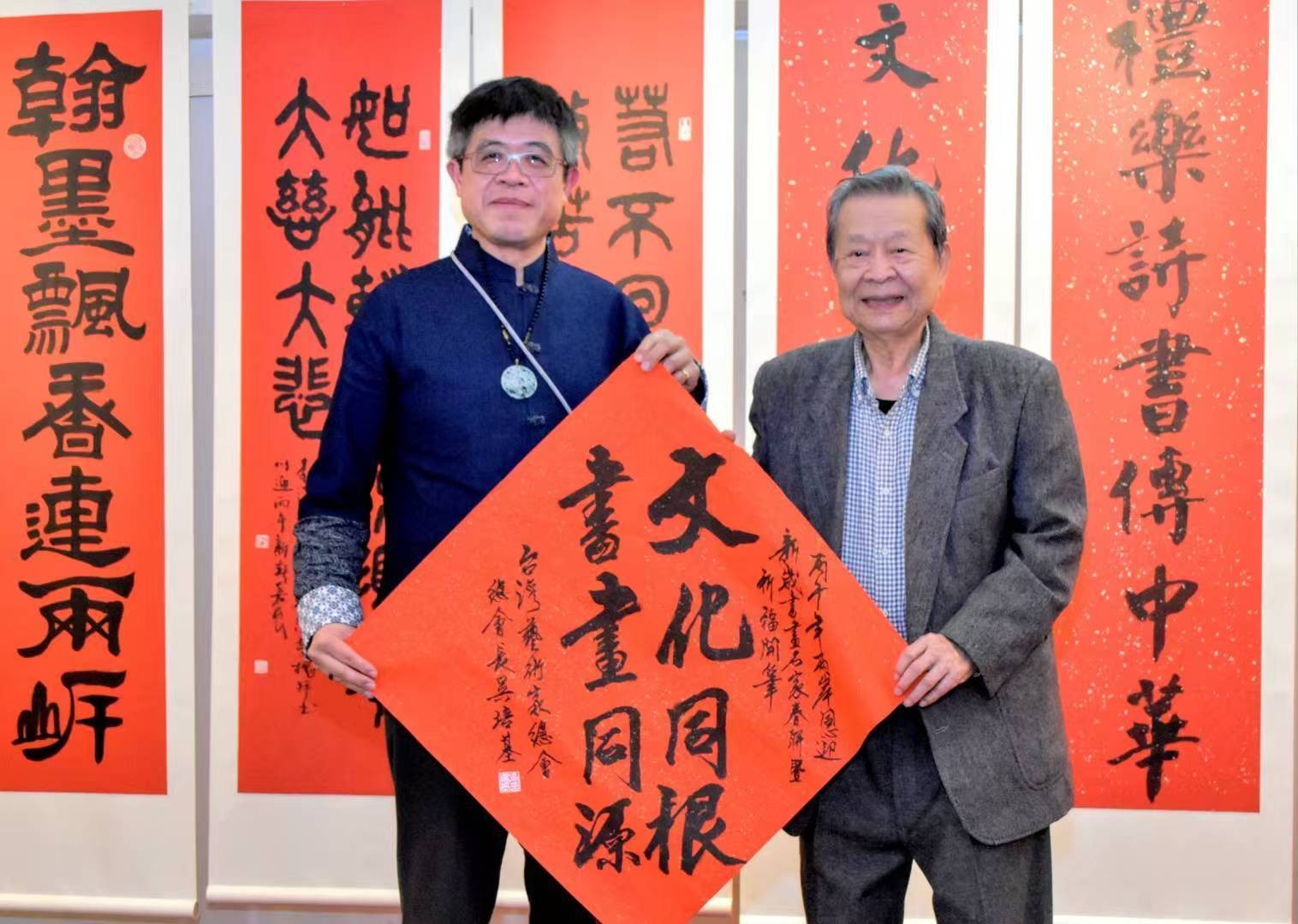 台湾艺术家总会总会长吴培基特别致赠大会贺词「文化同根书画同源」希望我会能有更多的机会和大陆艺文界进行交流,促进两岸文化的融合。