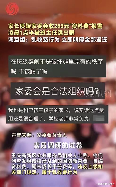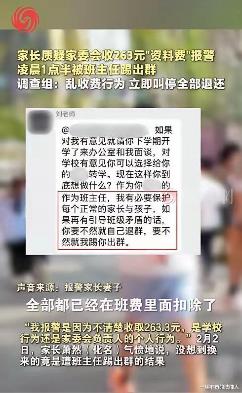 家长群里,一条收取263.3元费用的通知引发波澜,一位父亲因追问明细并报警,换来班主任一句嘲讽:“你先考个律师资格证再说吧!”随后,他与妻子被果断移出了群聊。