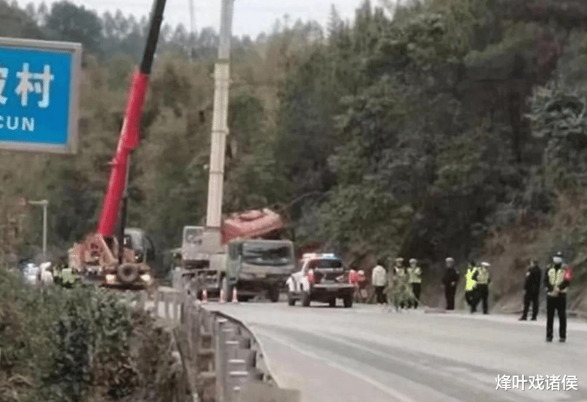 现场一片狼藉,有位网友说,当时早上还经过了现场,看到车头冲山坡上去了,可见当时的冲击力量不小,紧急避让导致的,并且现场有多位交警在那边处理事故。