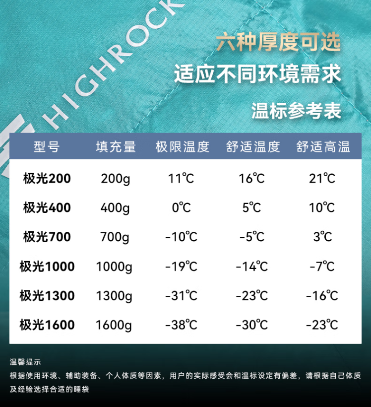 最重要的是,任何睡袋标注的温标都是实验状态下测出的,但是到了实际应用场景,我们每个人的体质不同,对外接温度的感受也不一样,所以建议标号高一点比较稳妥。