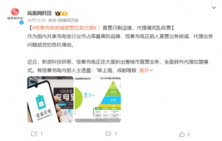 1.怪兽充电大面积出售城市直营业务据媒体报道,除了上海、成都等核心城市优质点位仍保持运营以外,怪兽充电将把其他城市的直营点位全部打包,出售给区域代理商,并且不再新增直营点位。但有代理商透露,由于成都地区不稳妥,成都的点位也已经开始打包出售了。