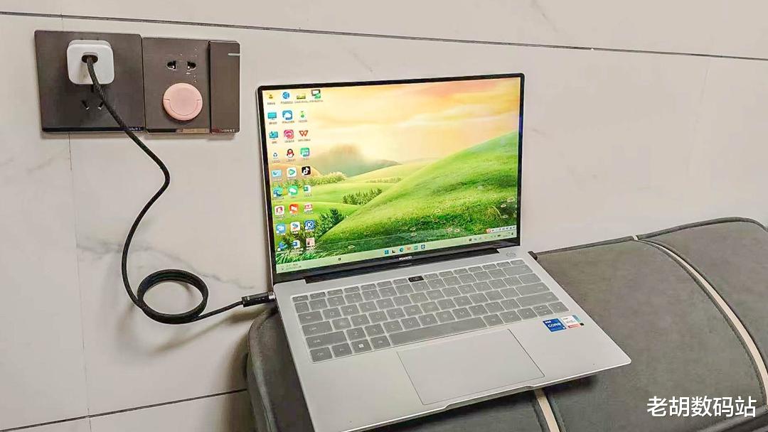 接着测试笔记本电脑的充电表现。我使用的是华为笔记本,将米物67W小钢炮搭配240W数显屏磁吸快充线接入后,线材屏幕立即亮起并显示当前充电数据——功率稳定在58W左右,电压电流数值清晰可见。即使在同时运行多个程序的工作状态下,充电功率依然保持稳定,没有出现明显波动。这个充电效率完全能满足我在外应急补电的需求。更让我满意的是,整个充电过程中充电头仅有微温,散热表现相当不错。