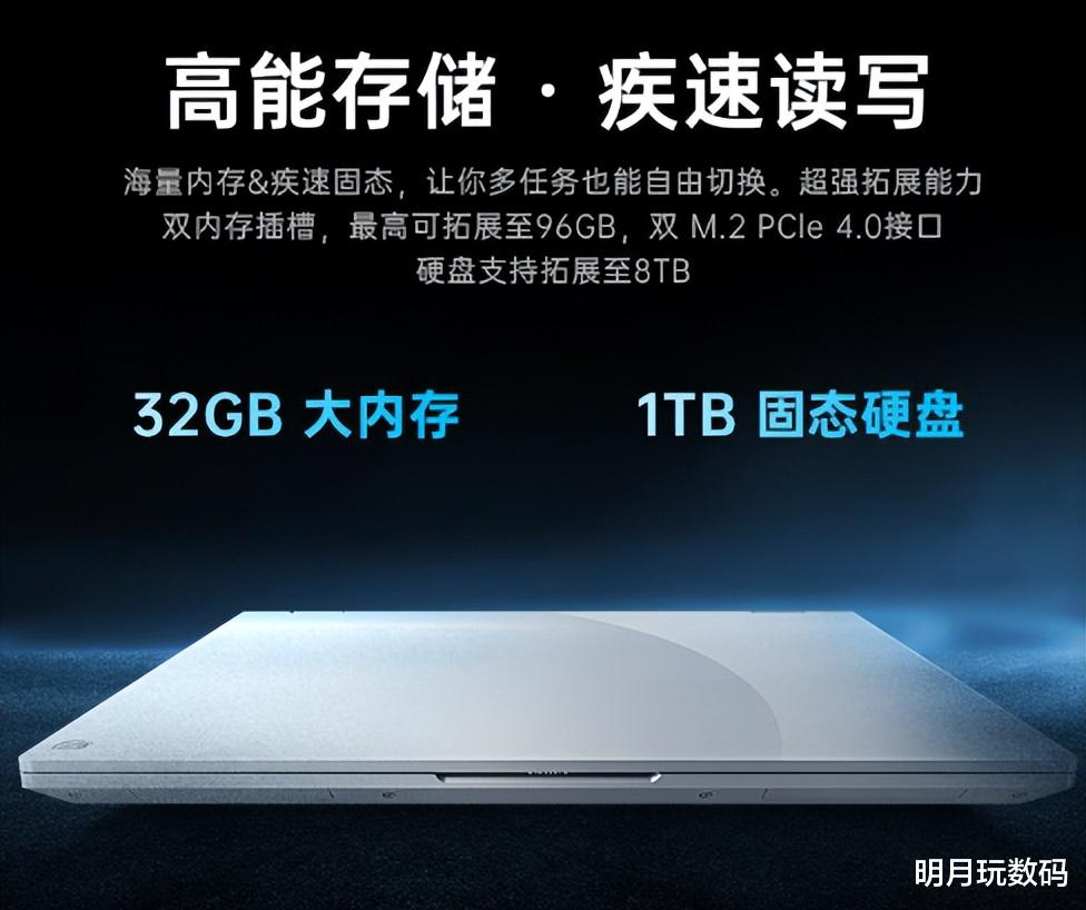 内部预留双DDR5 SO-DIMM;双M.2 2280均支持PCIe 4.0×4,自带1TB,再插一条4TB也不成问题。