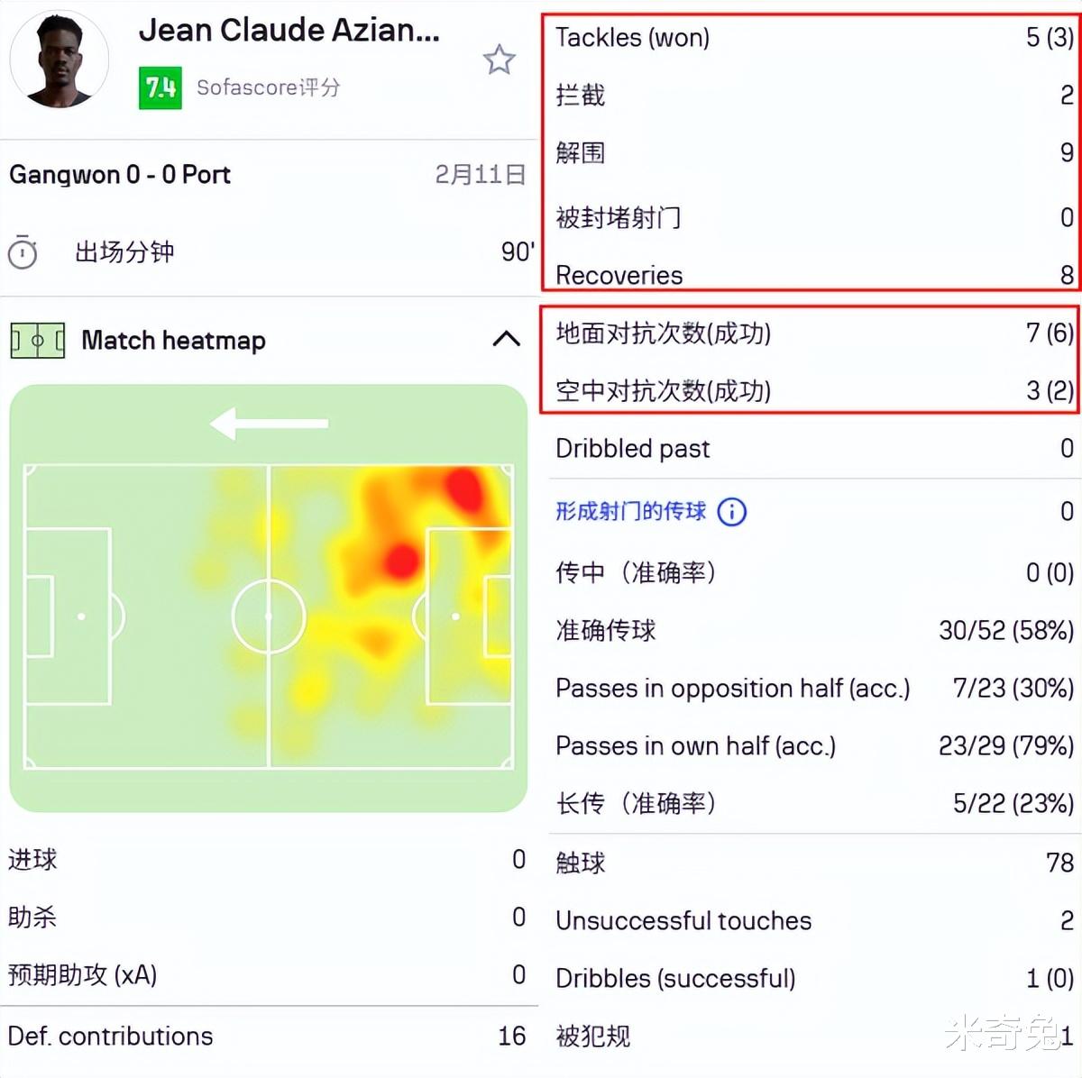 同时在对方反击时,让克劳德防守覆盖面还挺大,这也是他最大的卖点。全场比赛他完成了16次成功防守,交出一份9次解围、5次抢断、2次拦截和8次抢回球权的成绩单。更是10次一对一对抗赢下8次,让人相信他会是比茹萨更好的防守球员。