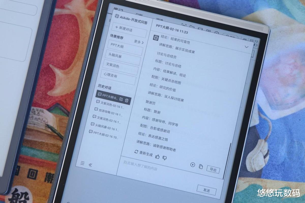 AI创作体验:目前主流的智能设备都搭载了AI创作或问答功能,汉王M10 mini和科大讯飞Air2 pro均有AI创作功能,一定程度上为用户创作提供灵感提高工作效率。