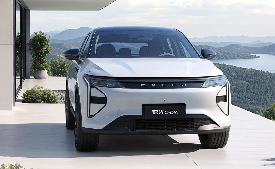 在外观上,瑶光 C-DM 寰球版采用了黑白双色悬浮车顶,搭配黑化 A/B/C 柱、隐藏式门把手,十分契合年轻化审美。前脸封闭式格栅内嵌点阵暗纹,菱形全 LED 大灯组支持三种动态点亮效果,中央 “EXEED” 自发光标识与车尾贯穿式流水尾灯共同强化夜间辨识度。