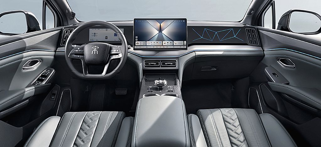 内饰上,瑶光 C-DM 寰球版采用悬浮环抱式中控台设计,全系标配NAPPA 头层真皮座椅,搭配 8 扬声器 SONY 音响系统与 256 色可调节氛围灯,打造沉浸式视听体验。50W 手机无线快充、双区自动空调、全景天窗等配置的加入,进一步提升了出行的便利性与舒适性。