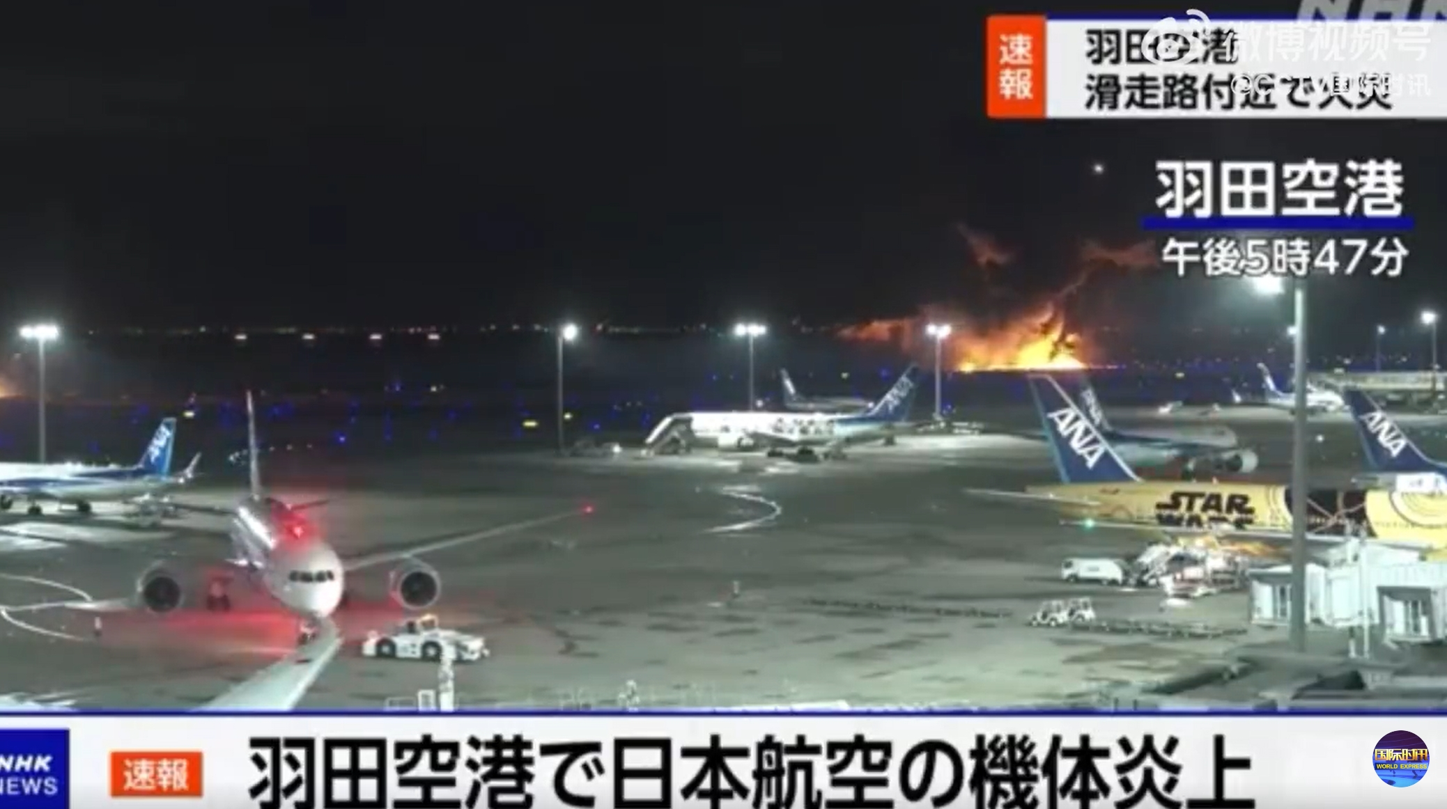 东京羽田机场险情:飞机相撞致17人受伤,海上保安厅飞机5人死亡