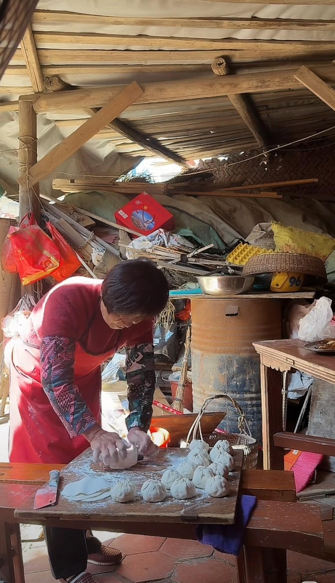 房前屋后直播了一圈的瑾汐,又来到了一个杂物棚子,妈妈正在做过年用的食品。