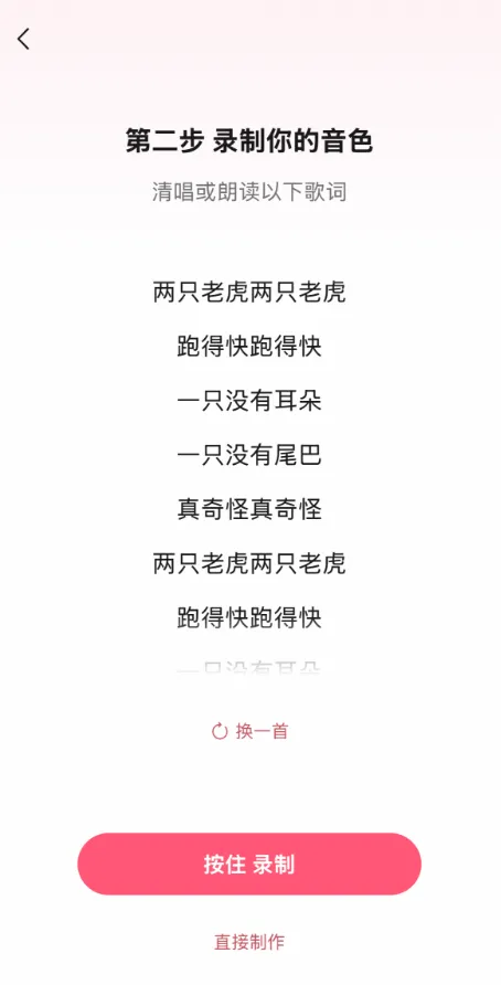 左右滑动挑选喜欢的歌词,即可开始录入自己的声音。