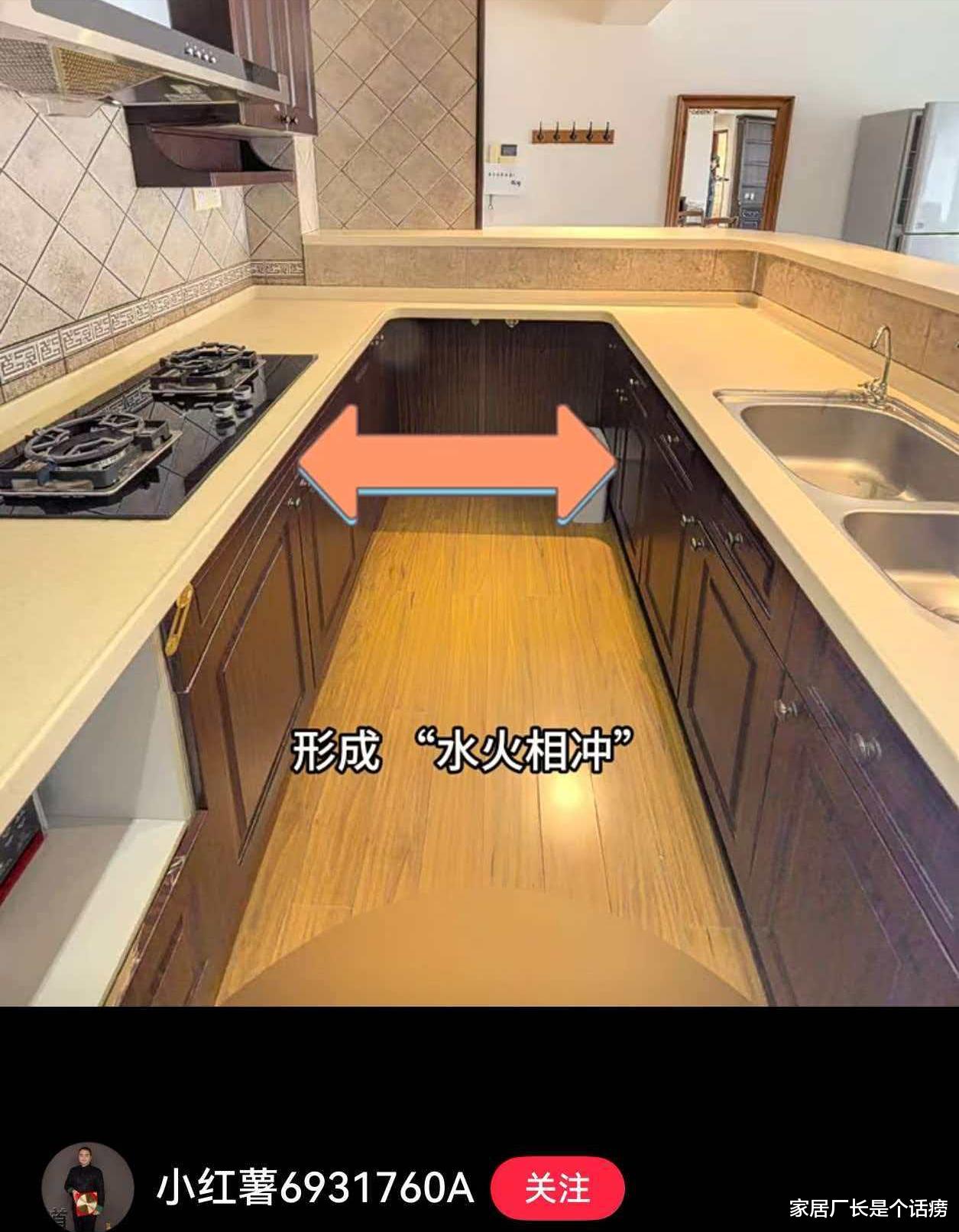 科学解读:水槽与灶台呈L型布局最为理想,因为这是按照厨房动线设计的,而如果水槽(水)与灶台(火)正对或紧挨着,会形成动线对冲,比如你在左侧炒菜,我在右侧洗菜,两个人的动线、动作就会重叠/打架,带来不便甚至争吵。