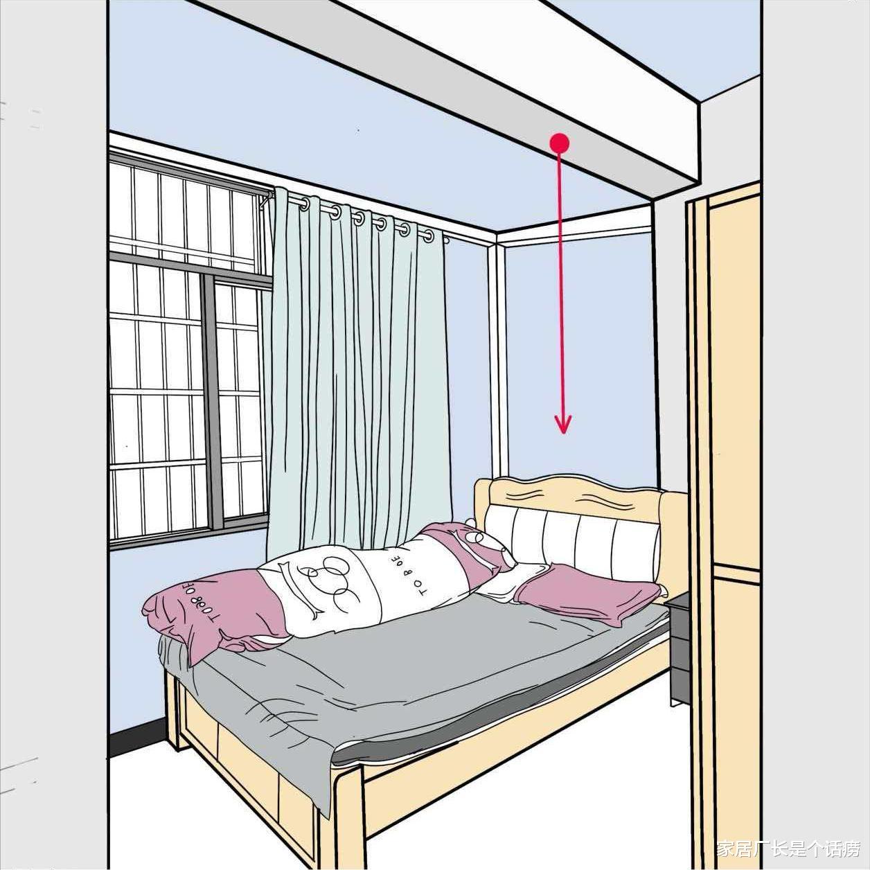 科学解读:躺在床上/沙发上,头顶有大梁,会带来明显的压抑感,心理上觉得万一掉下来···影响情绪和专注力,设计上最好通过吊顶或布局避开。