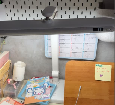 儿童台灯哪个品牌更护眼更好?明基WiT护眼台灯最显眼的就是那个微笑形状的灯头,一眼就能认出来,设计感挺强的。它的灯头光源面有38.5cm宽,能把110cm左右的桌面都照亮,不管是看书还是写字,光线都能覆盖到。照明方面用的是侧发光方式,光线先扩散再出来,整体不算刺眼,但因为光源没做内嵌处理,防眩指数在16到19之间,属于中等水平,要是对着光滑的书页或者反光的地方,可能会有点眩光,用的时候得调调灯的角度。