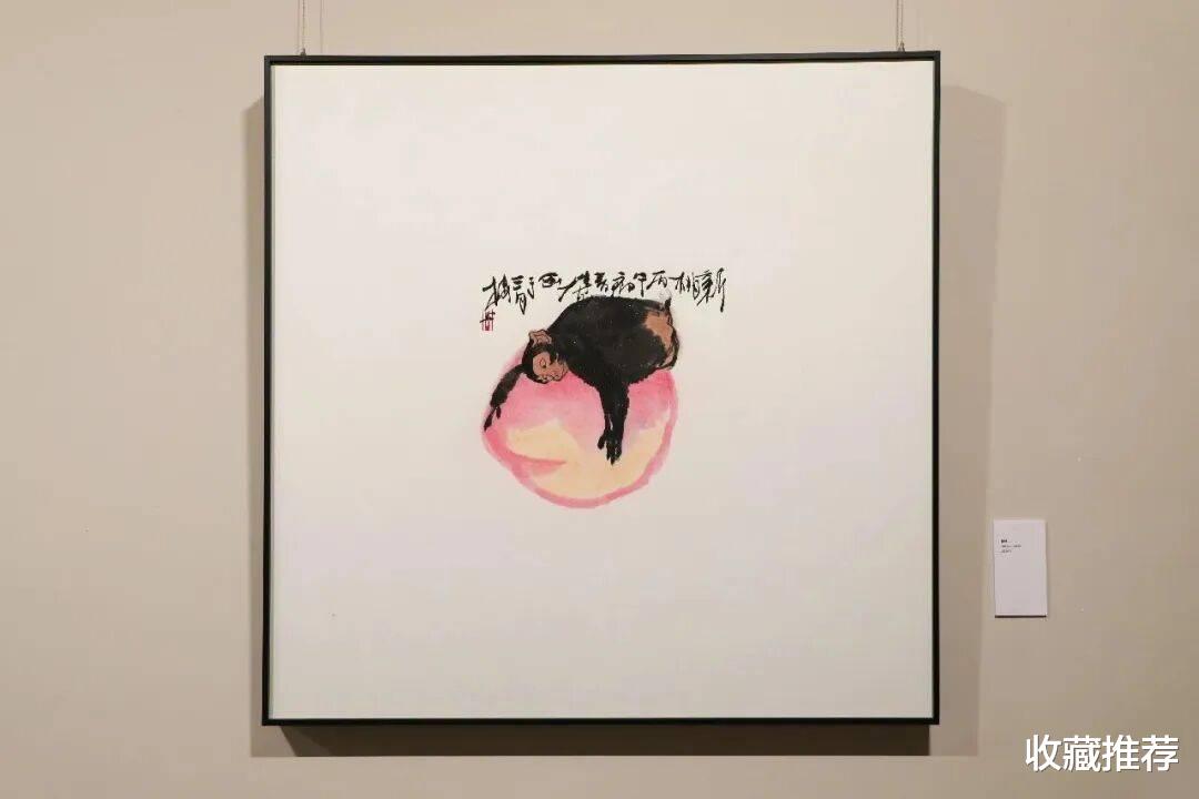 展出的数十幅绘画作品,以黄胜凡近年来“以书入画”创作的群猴图为主。盈尺小品中,寥廓的构图、简洁的白描,令一只只机敏聪慧、活泼灵动的墨猴跃然纸上,充满野趣与率真。丈六巨幅则运用流畅的水墨、奔放的气韵,与纵横挥洒的大草线条共同营造出通透和煦的意境。画中灵猴栖息于山野林泉之间,或辛勤觅食,或慵懒侧卧,或追逐嬉戏,或凝神静思,充分展现了线条与造型之美。尤其是自中国艺术节归来后创作的新作,构图饱满厚实,设色大胆鲜明,笔触精微、色彩亮丽,既具强烈的视觉冲击力,又富有现代气息与神秘韵味,进一步拓展了黄胜凡的艺术想象力与创新表现力,诠释了其“书画兼修、入古出新”的艺术追求与“以书入画、书画并举”的创作路径。
