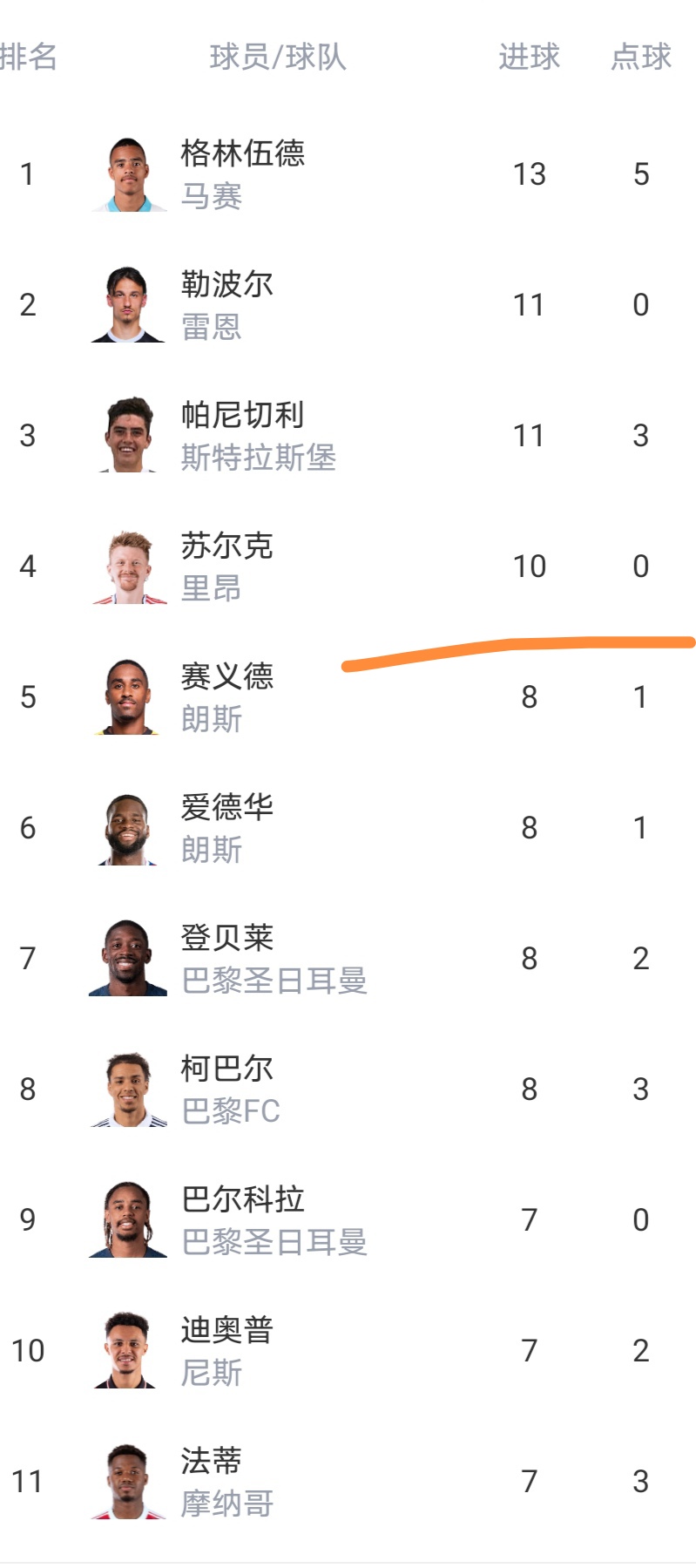 射手榜舒尔茨、格林伍德等4人进球上双。