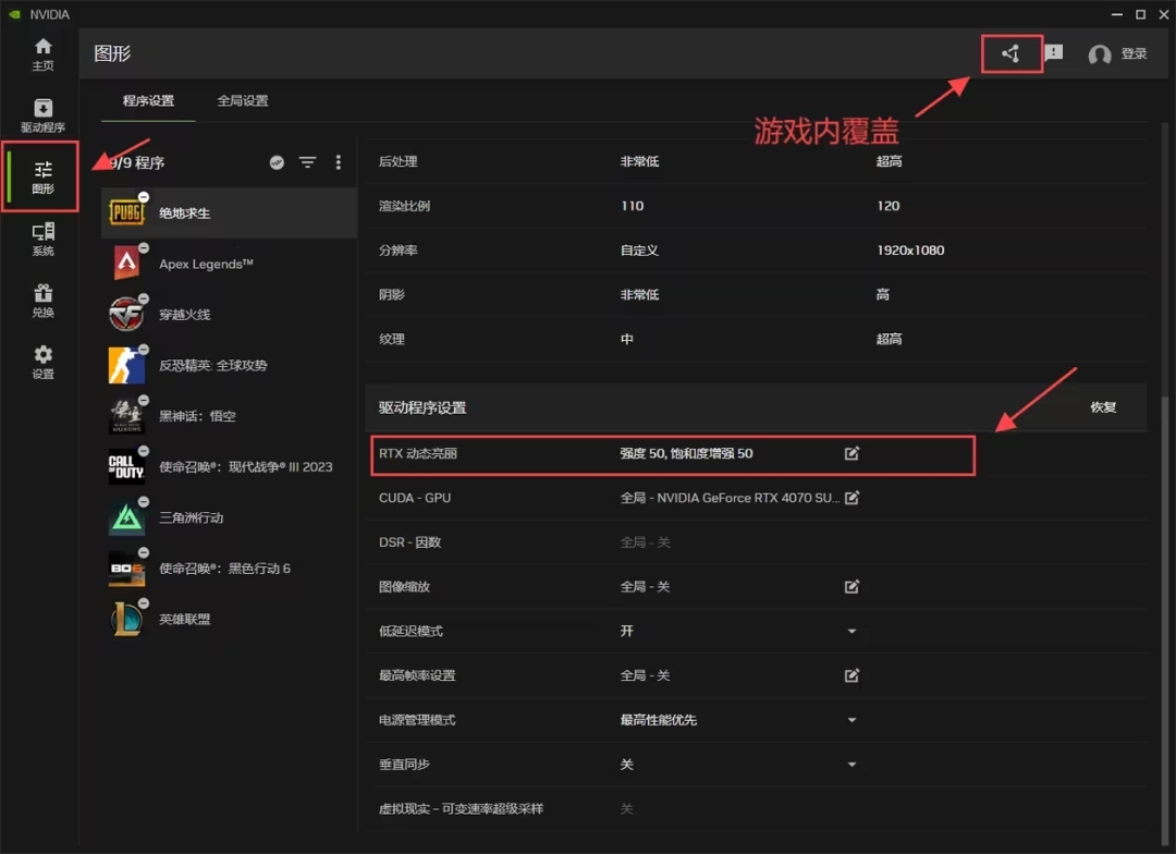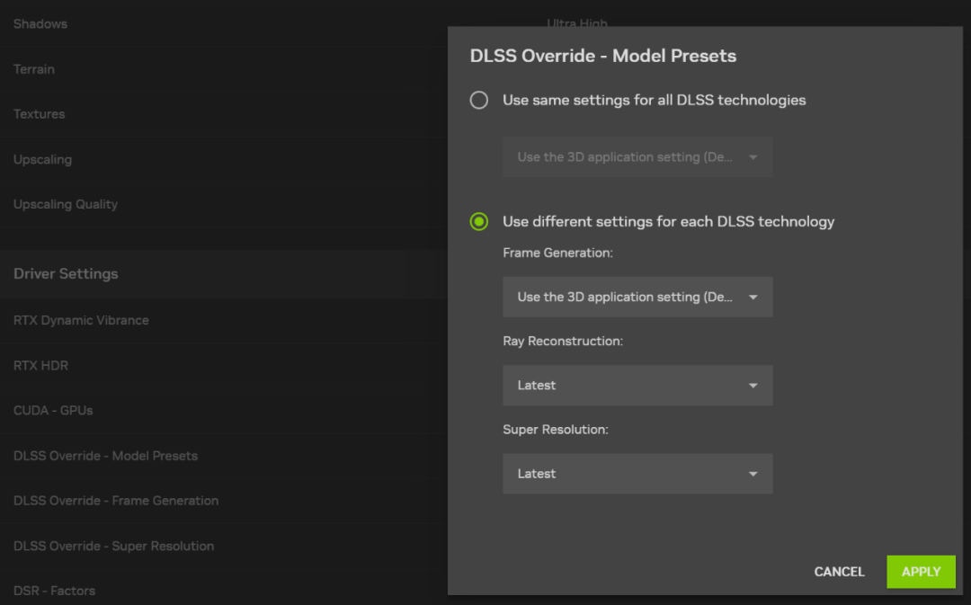 2)DLSS Override:把游戏里过时的 DLSS一键换新