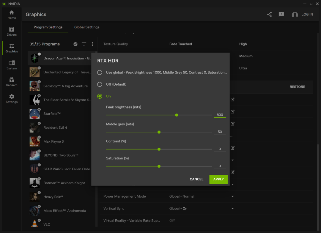 RTX HDR用 AI 给 SDR 游戏补HDR效果。优点是部分游戏画面层次会更讨喜。坑点也很明确,它会和系统的 Auto HDR 逻辑打架,需要你关掉Win10/11的“自动HDR”,而且效果还是不如原生HDR游戏,把它当增强插件,别当画质重做,收获还是不错的。