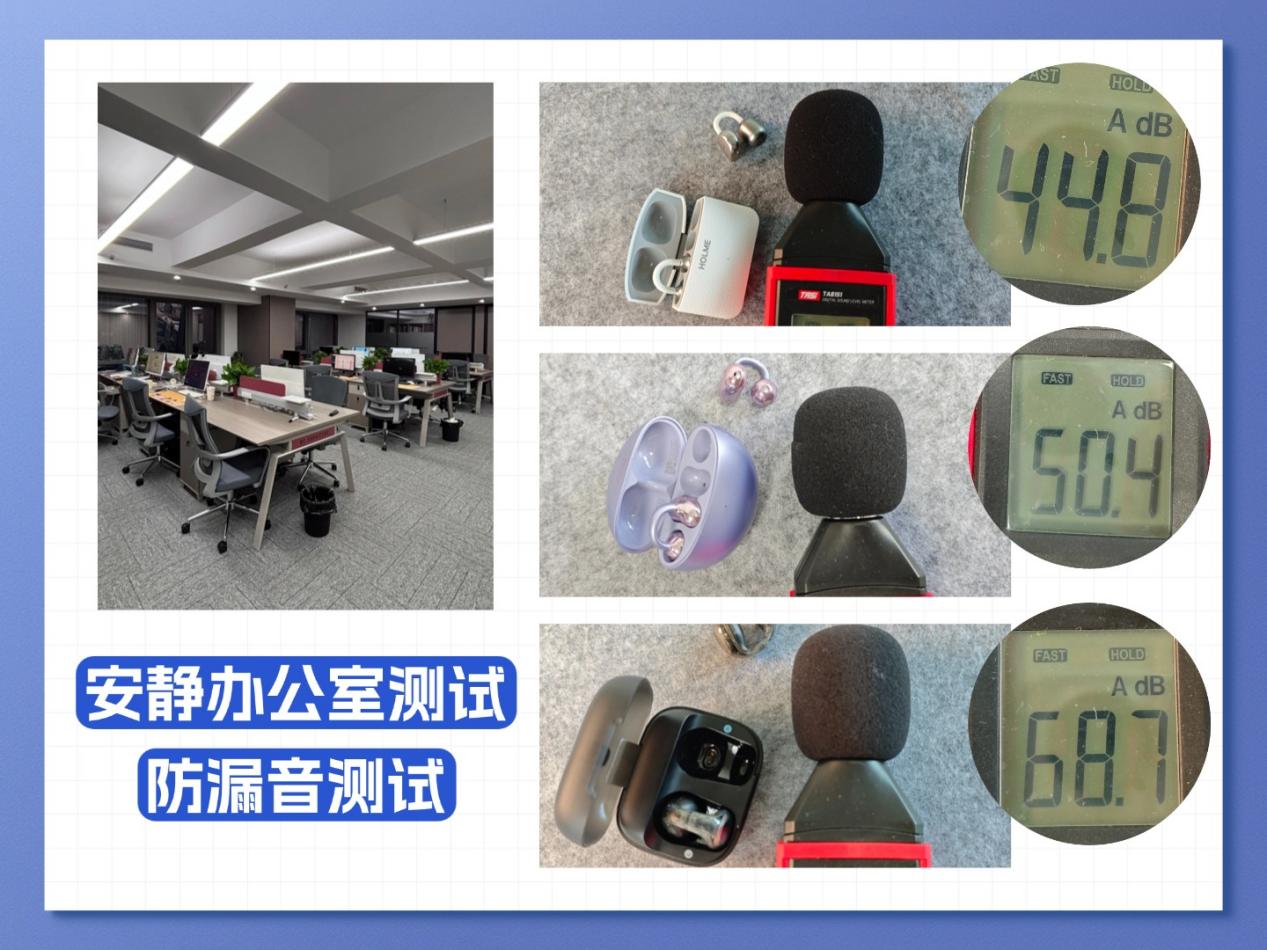 虹觅Clip Pro:我在安静办公室里测虹觅Clip Pro的时候,特意开了它的防漏音模式,测出来最大漏音也就 44.8 分贝。说实话,我测过这么多耳夹式耳机,就它的防漏音能力最顶,完全不用怕声音漏出去打扰到身边人。