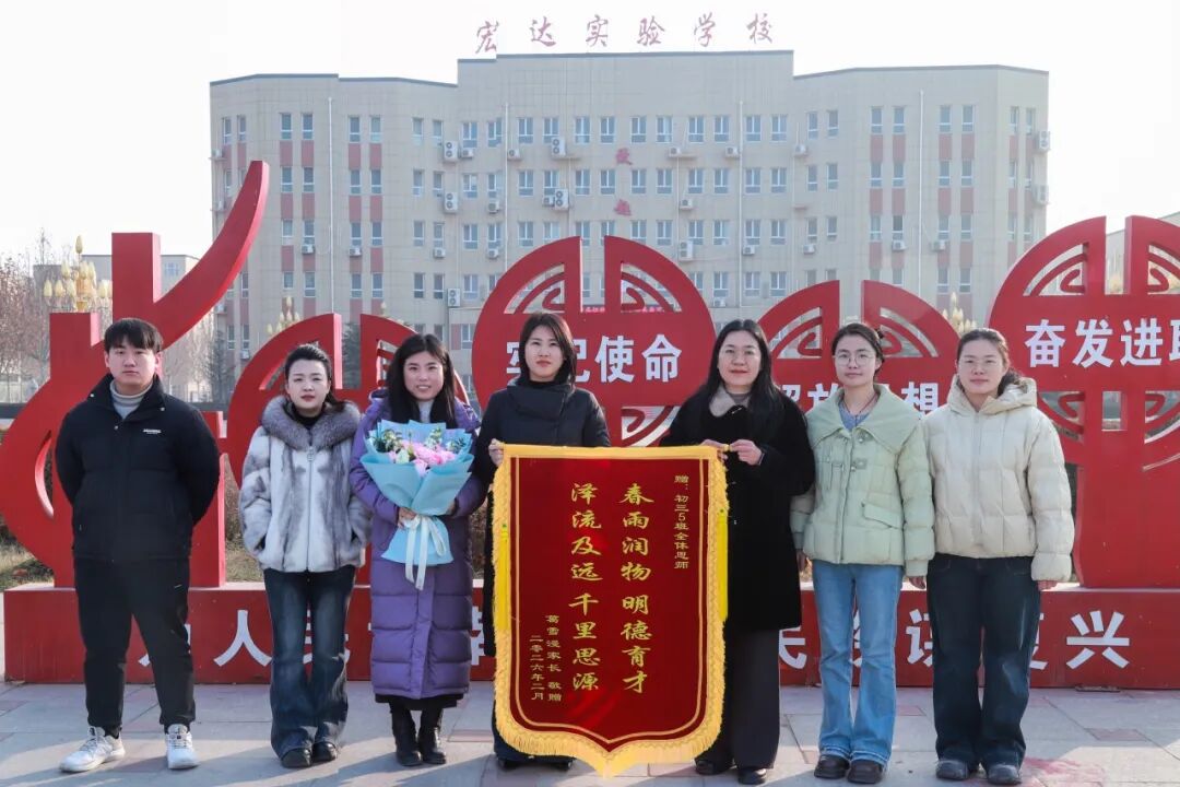近日,武邑宏达实验初三5班收到了一面由葛雪漫学生家长赠送的锦旗。锦旗上“春雨润物,明德育才,泽流及远,千里思源”十六个字,熠熠生辉,承载着家长对学校和老师们深深的敬意与感激。