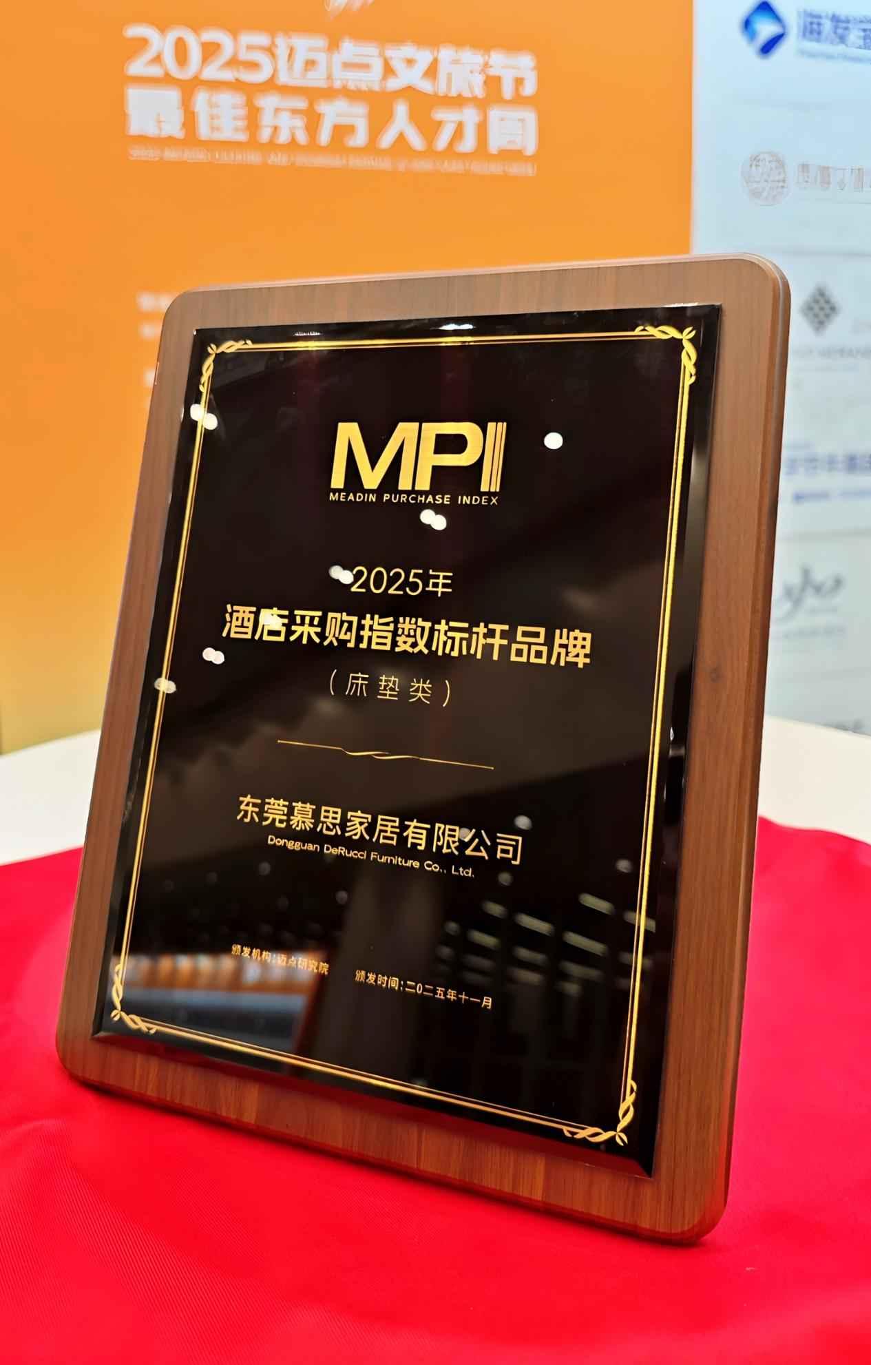 2025年11月20日-21日,2025迈点文旅节暨最佳东方人才周隆重举行。慕思入选“2025年酒店采购指数标杆品牌(床垫)”。