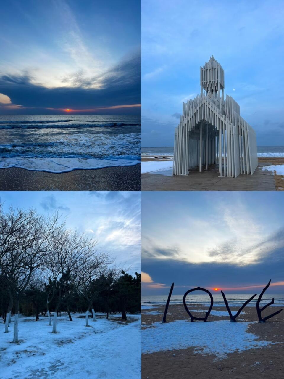 我来的时候刚好飘着雪花❄️,但是没那么冷🥶,给人的感觉就是非常舒适!灯塔广场的日出🌅非常美!和万平口可以连着一起打卡!还有科技馆的互动装置也非常有意思😁!