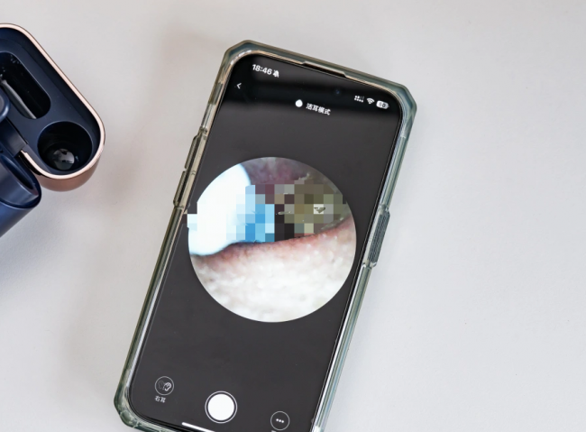 【1】画质表现:搭载500万像素摄像头,画质表现基本满足日常耳道观察需求,可清晰辨识一般污垢,但在细节层次呈现上相对有限,适合浅层耳垢清洁。