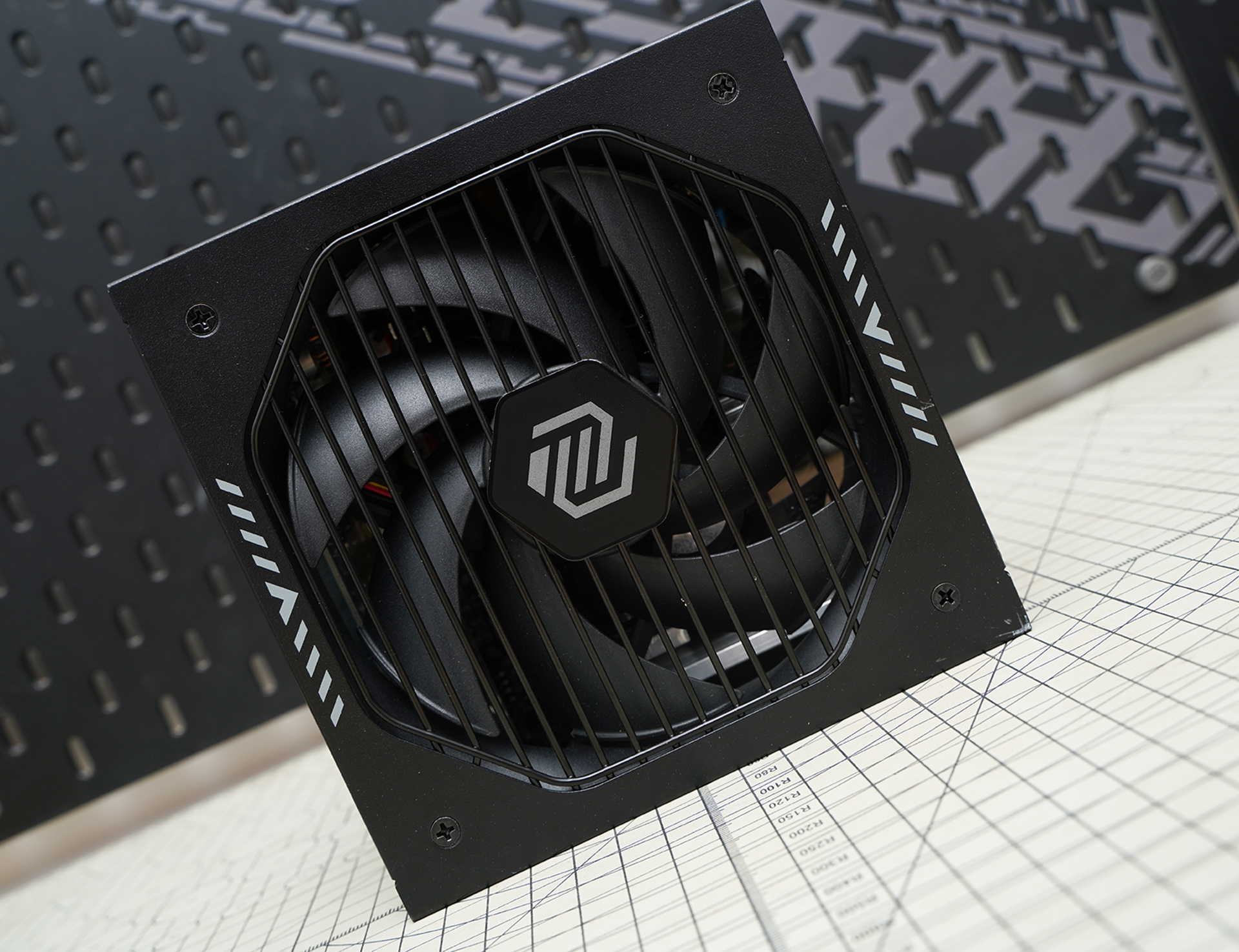 电源底部配备大尺寸静音风扇,并采用直条形金属风扇格栅,兼顾散热效率与整体硬朗风格。