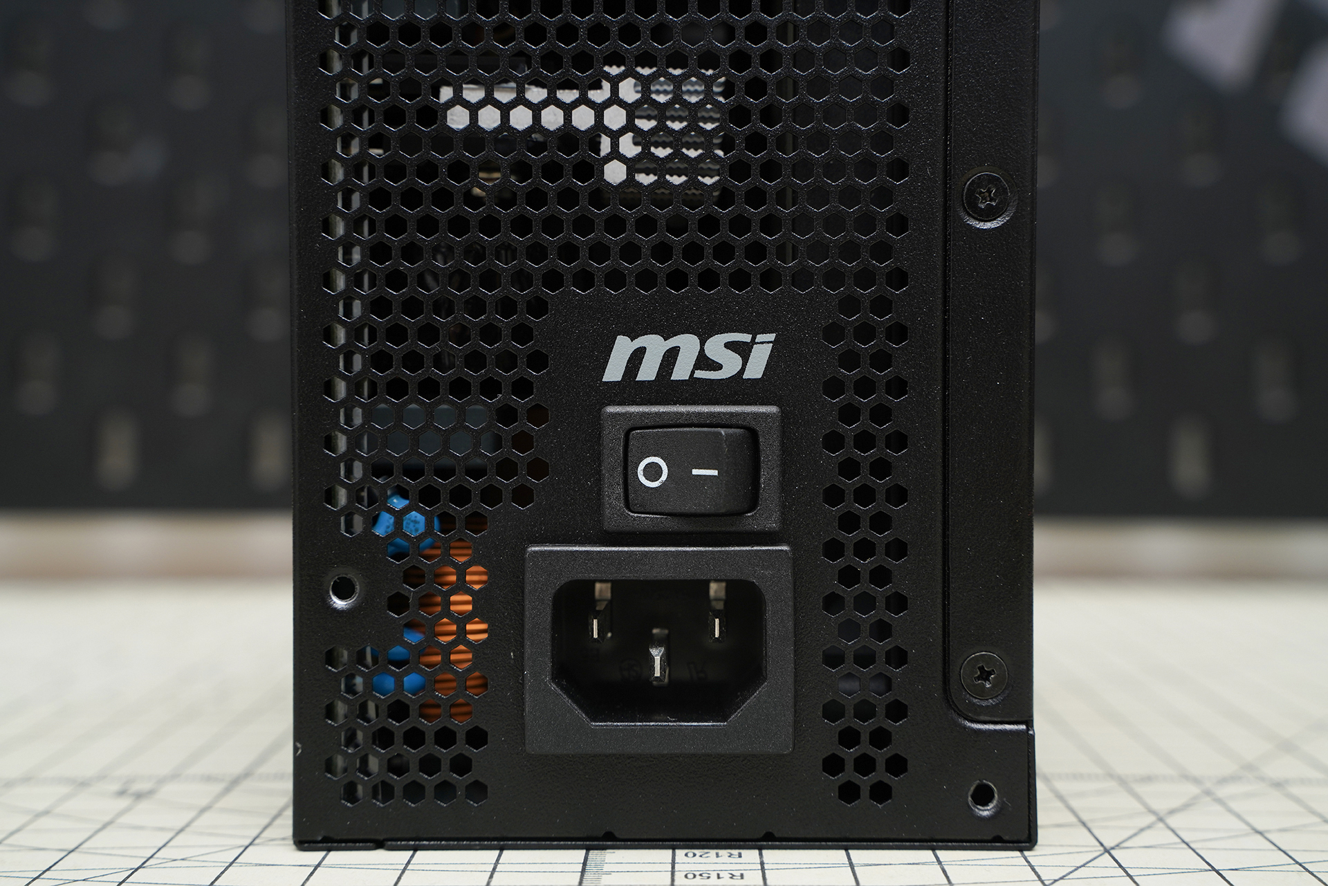 电源尾部采用大面积蜂窝状散热开孔设计,保证热量迅速排出,同时保留实体电源开关与标准 AC 输入接口,实用性与可靠性兼顾,整体布局简洁利落。