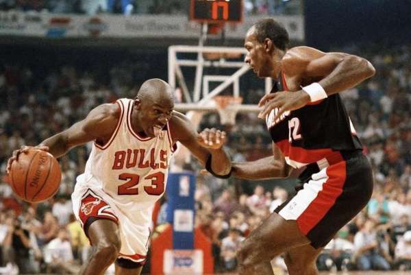 他的生涯巅峰时期与乔丹几乎重叠,能拿得出手的个人荣誉很少。在最最巅峰的91-92赛季,德雷克斯勒排在MVP榜单第二,第一名则是迈克尔-乔丹;