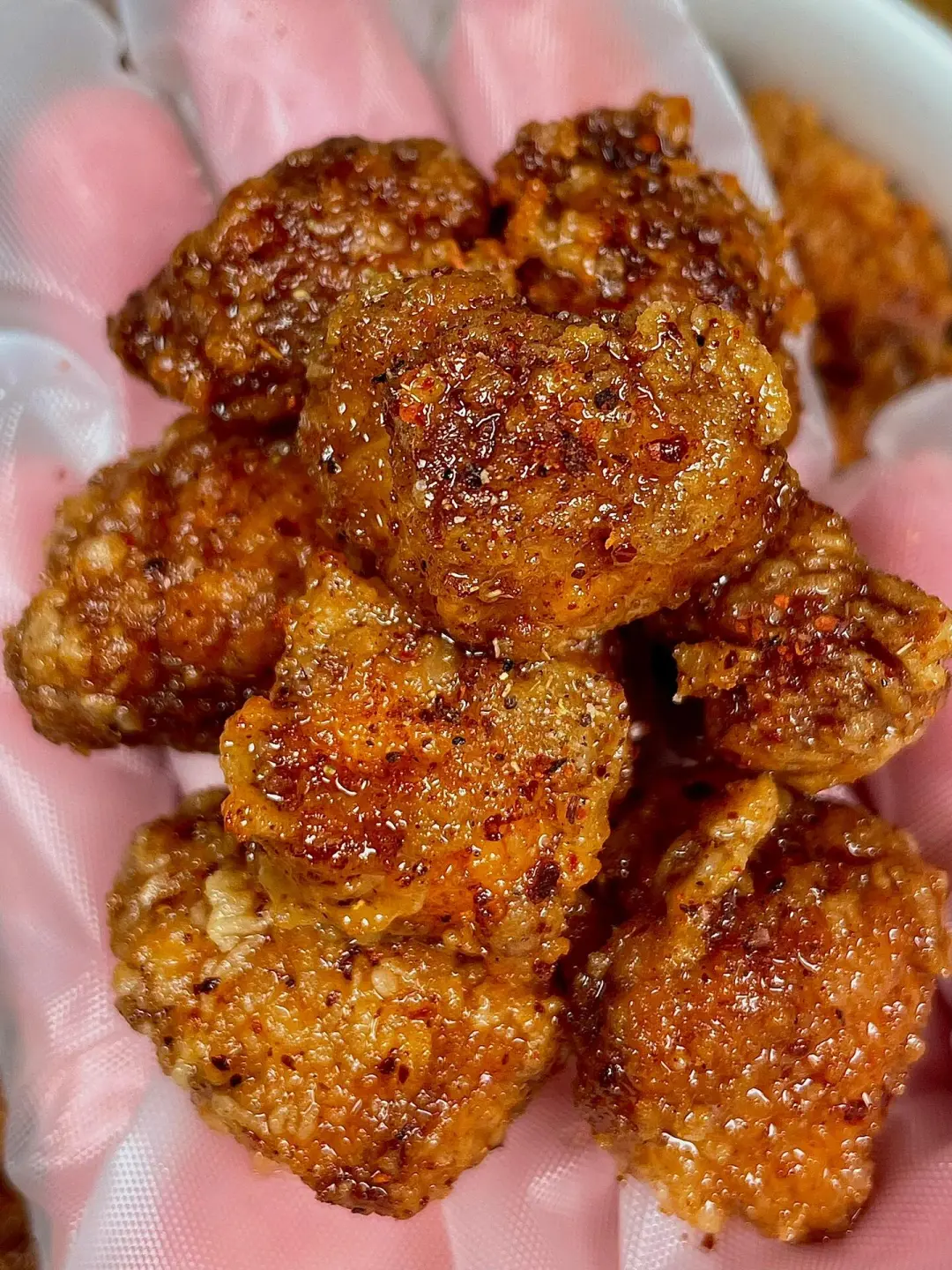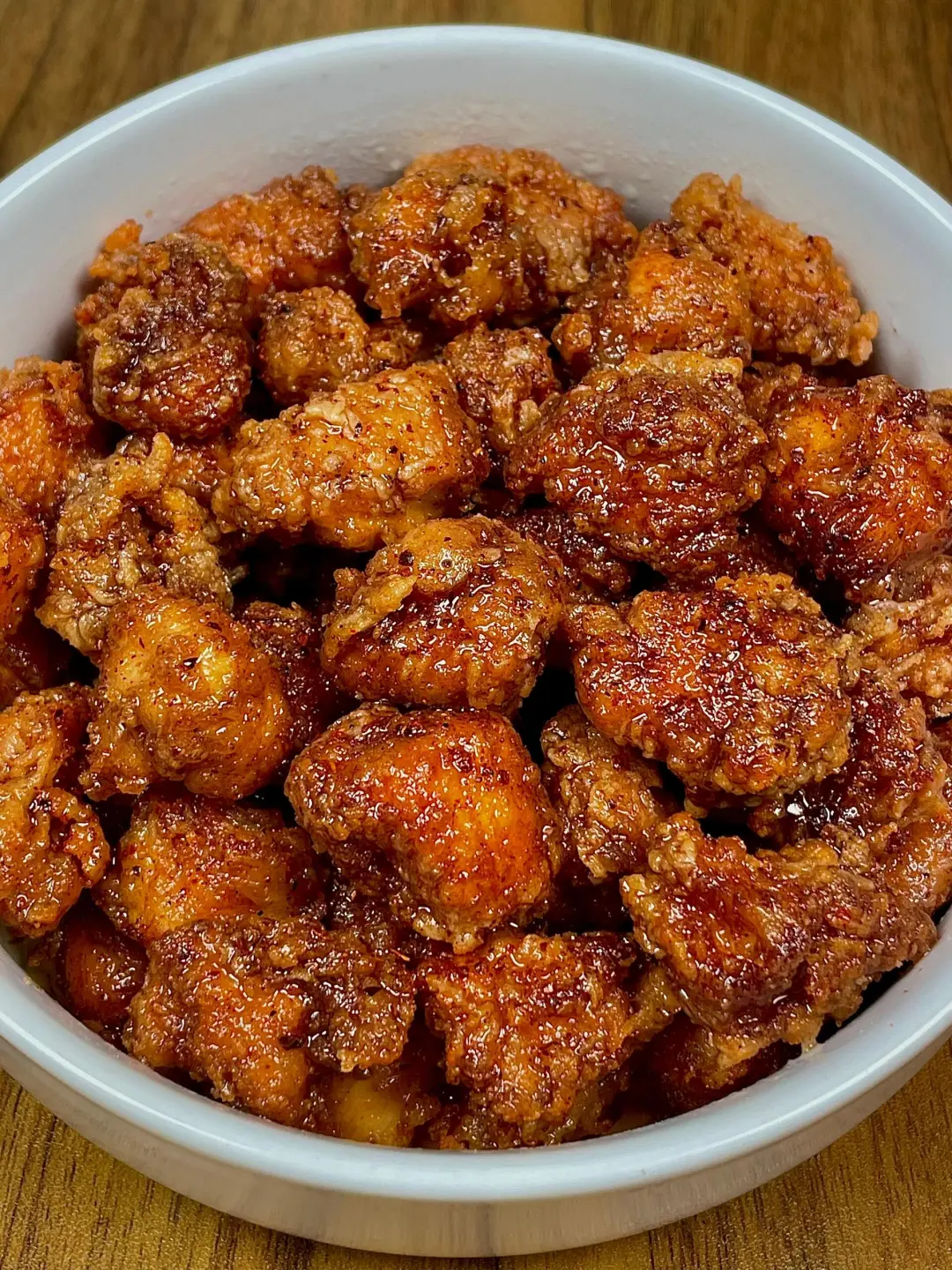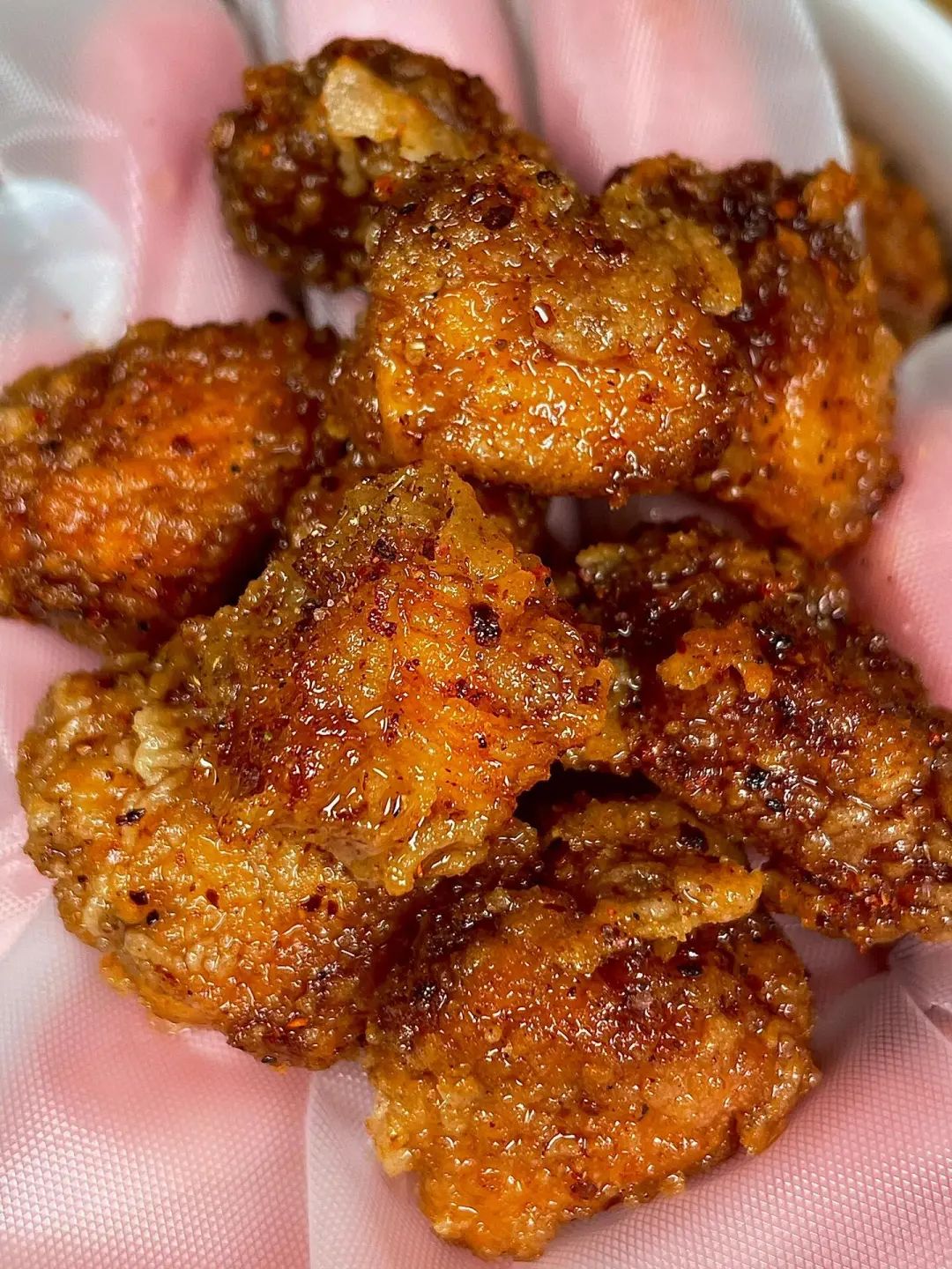 炸制的过程中,要用筷子不时地翻动鸡肉块,确保它们均匀受热,炸至金黄酥脆。