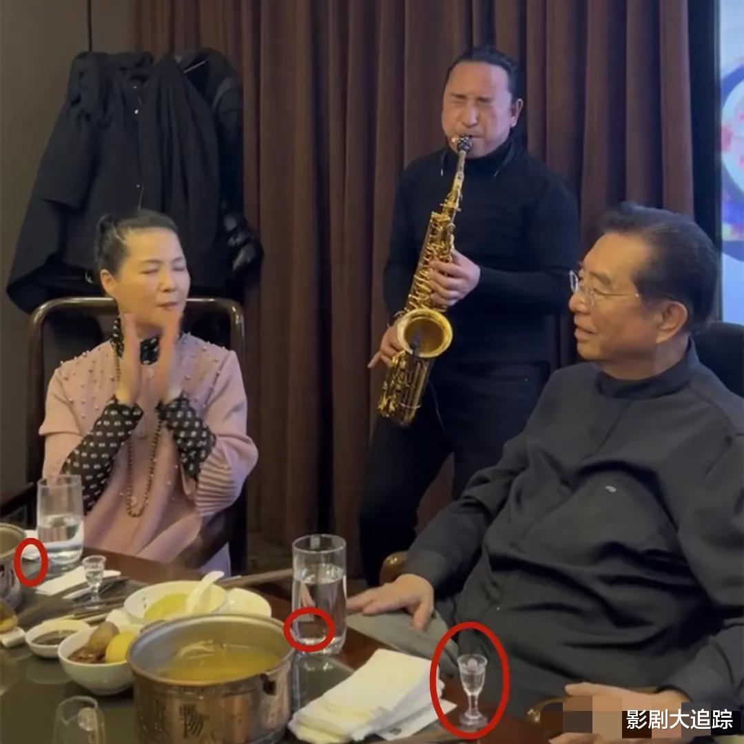 倒是才56岁的梦鸽,虽穿了一身娇嫩粉色,但神态看着比旁边已经84岁的李双江还老态龙钟,不过总归是出来玩的,梦鸽倒是也准备的充足,看脖子上挂的项链就知道她这一身也是用心搭配过的,但到底是不适合的年纪,穿着也感觉不伦不类的,但到底是音乐人,听着旁边的萨克斯声,就进入了认真的态度中,这也是她能走到如今地位的原因吧!