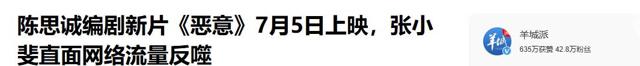 羊城派|陈思诚编剧新片《恶意》7月5日上映,张小斐直面网络流量反噬