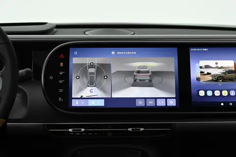 座舱的智能体验同样让人印象深刻,完全不输新势力品牌。它配备了 10.3 英寸全液晶仪表、双 13 英寸 2.5K OLED 联屏以及 25.6 英寸 AR-HUD,组成了沉浸式的五屏智能座舱。这套系统搭载了 AMD V2000 车机芯片,算力达到 394K DMIPS,操作起来特别流畅,切换界面、打开应用都没有卡顿,和高端纯电车的体验差不多。导航地图能在不同屏幕间流转,车辆信息也能跨屏投影,开车时不用频繁低头看仪表,很省心。