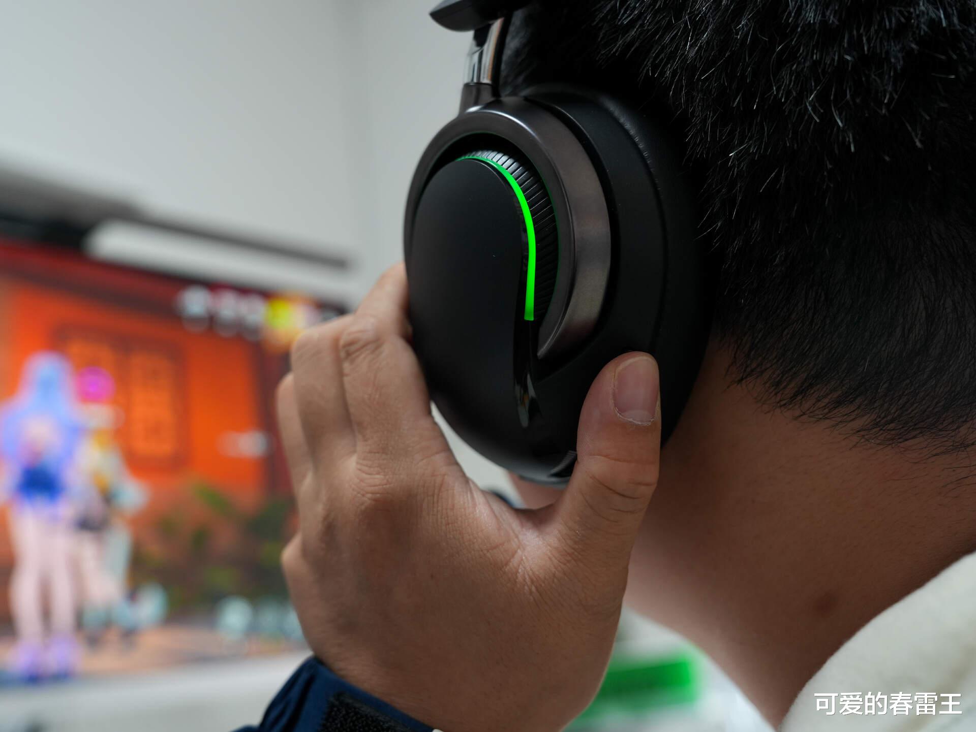 我的游戏耳机狼蛛A7Pro,它悬浮的这一圈是有RGB的灯效的,灯光比较柔和,不用的时候也可以把它关闭,开启耳机玩游戏的灯光非常炫酷,会进一步提升我的游戏氛围~