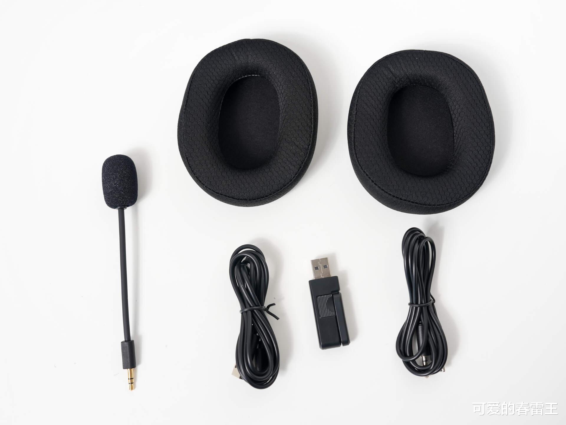 首先看包装盒就非常简洁大气,很有质感,这款耳机有5个颜色可选,我女朋友给我搞的这款是这款黑灰色的,整个包装潮流范儿十足,从盒子外观设计来看,非常的时尚大气,打开盒子就是基本配件:耳机1个、2.4G接收器、说明书1本、Type-C充电线1条、3.5mm耳机线1条。