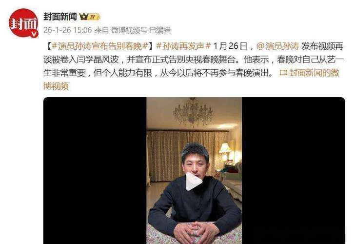 2026年1月,57岁的孙涛哽咽官宣退出春晚,坦言“个人能力有限,该把舞台让给年轻人了”。
