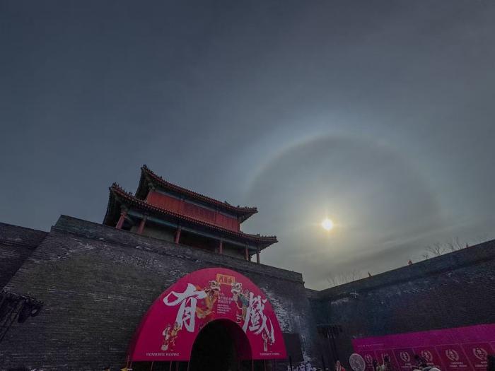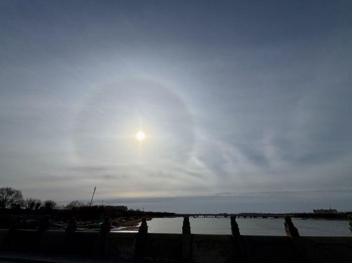 视点|今晨北京上空现日晕奇,市民卢沟桥畔定格瞬间
