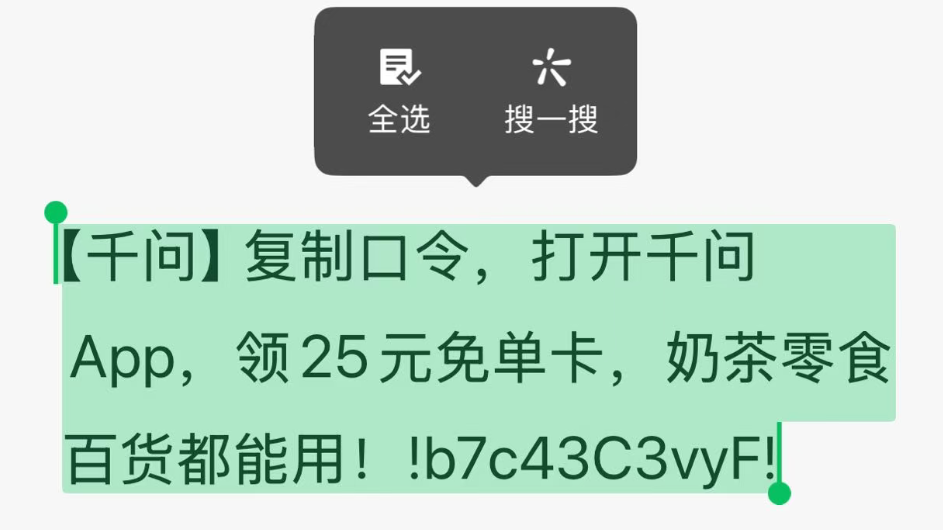 但这场“规训”的真正高潮,在于后续的连锁反应。当元宝和阿里千问被迫转向“口令”这一古老形式求生时,微信再次亮剑。用户发现,这些包含特定字符的口令信息,在微信对话框中竟一度无法长按复制。一个操作系统级别的基础功能,被一个应用软件所“劫持”,用以阻断信息的自由流动。这不再是“管理”,简直是精准到像素级别的“绞杀”。