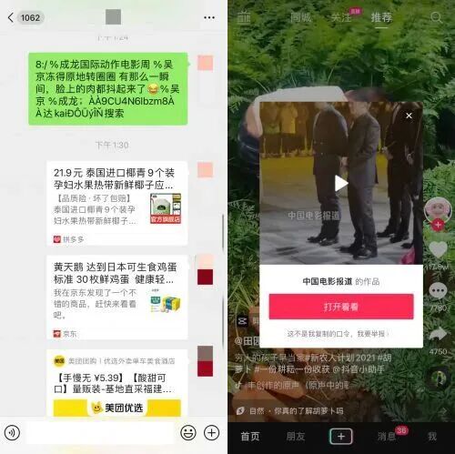 长达数年,用户无法在微信中直接打开淘宝链接,为了完成一次简单的商品分享,用户被迫复制一长串由平台精心加密、夹杂着各种符号的“淘口令”或“抖音口令”,再切换应用打开。这种形如“火星文”的乱码,是互联网走向割裂的耻辱印记,是技术为了突破人为壁垒而进行的悲哀“异化”。它极大地损害了用户体验,制造了无数无效的点击和跳转,形成了巨大的“数字摩擦成本”。
