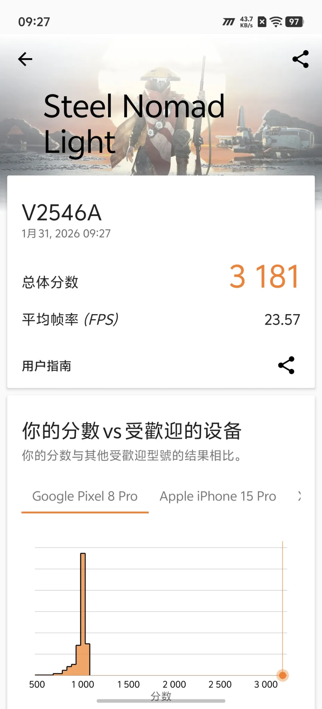 iQOO 15 Ultra的Steel Nomad Light光追性能成绩
