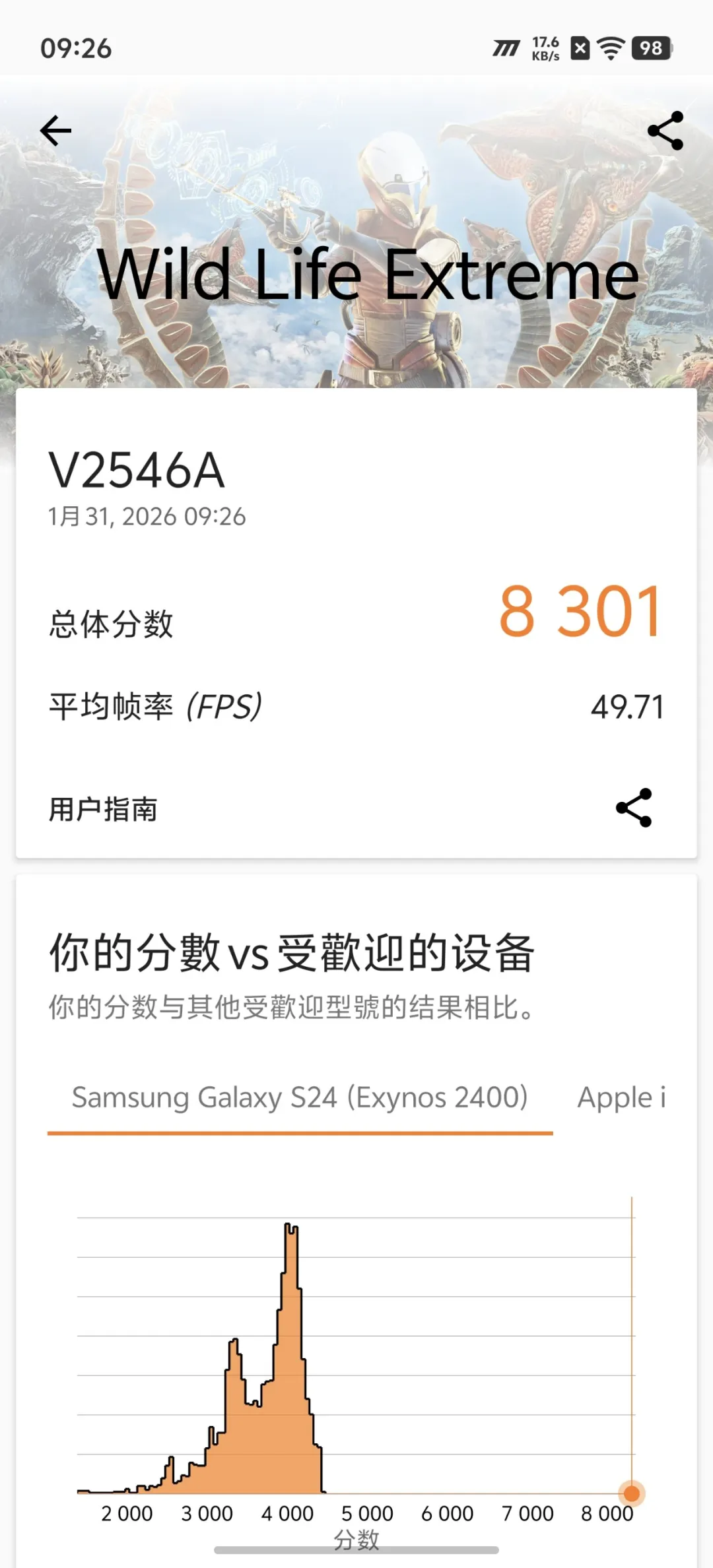 iQOO 15 Ultra的3D Mark Wild Life Extreme成绩