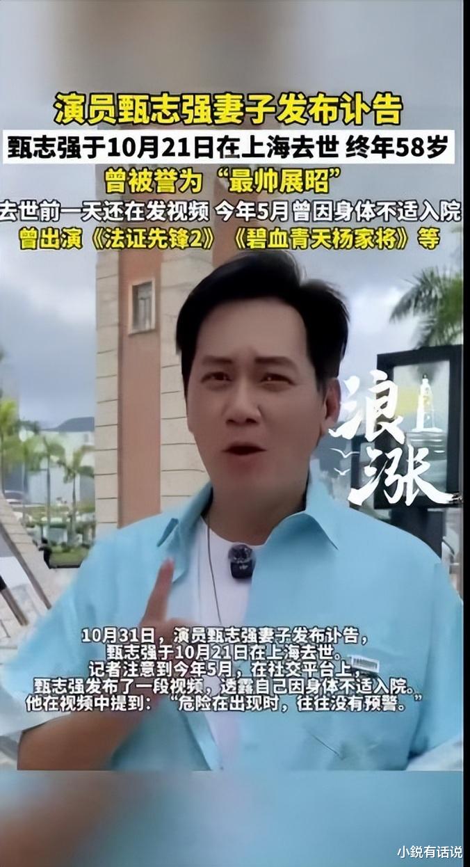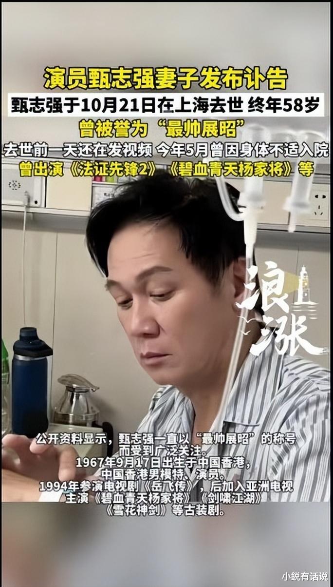 突传死讯!据港媒最新报道,香港知名男星、前亚洲电视演员甄志强,在上海离世,年仅59岁。