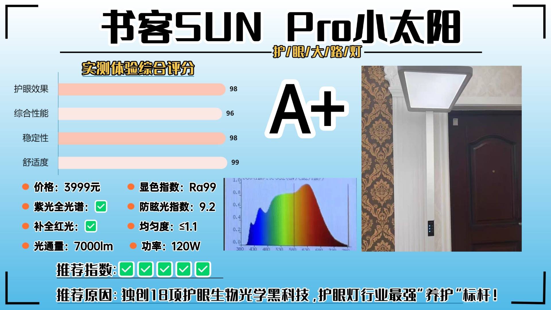 护眼大路灯第一名:书客护眼大路灯SUN2;被多家权威家电与眼科医生高度评价,誉为 旗舰护眼大路灯的巅峰之作!