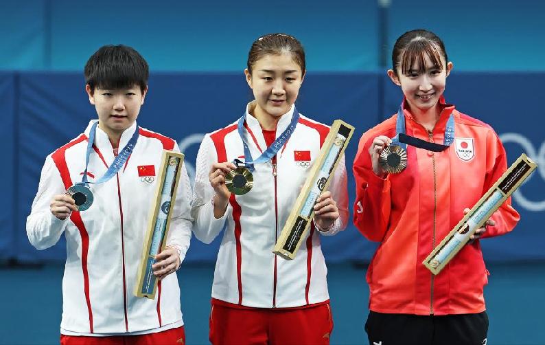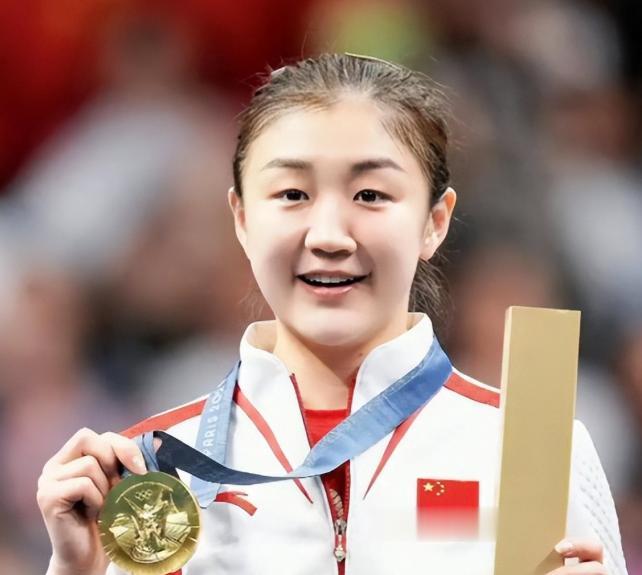 用实力击败队友孙颖莎,夺得个人首枚奥运单打金牌。