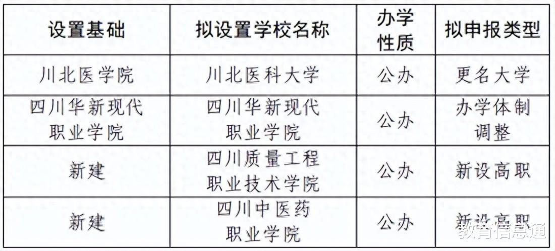 2月11日,《四川省教育厅关于2026年第一批拟申报高校设置事项的公示》发布。此次公示,拟设置4所高校,其中川北医学院更名为川北医科大学。