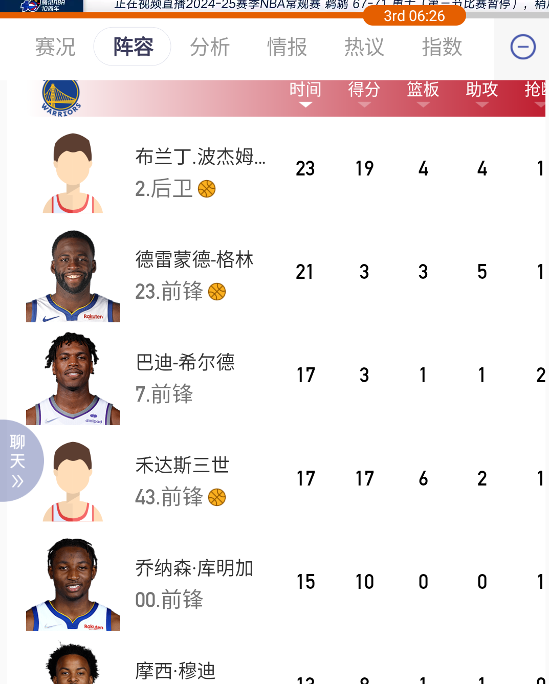 我正在写时第三节还在进行,下面第三节时我截下的统计:大家表现都很好,除了希尔德命中率低。