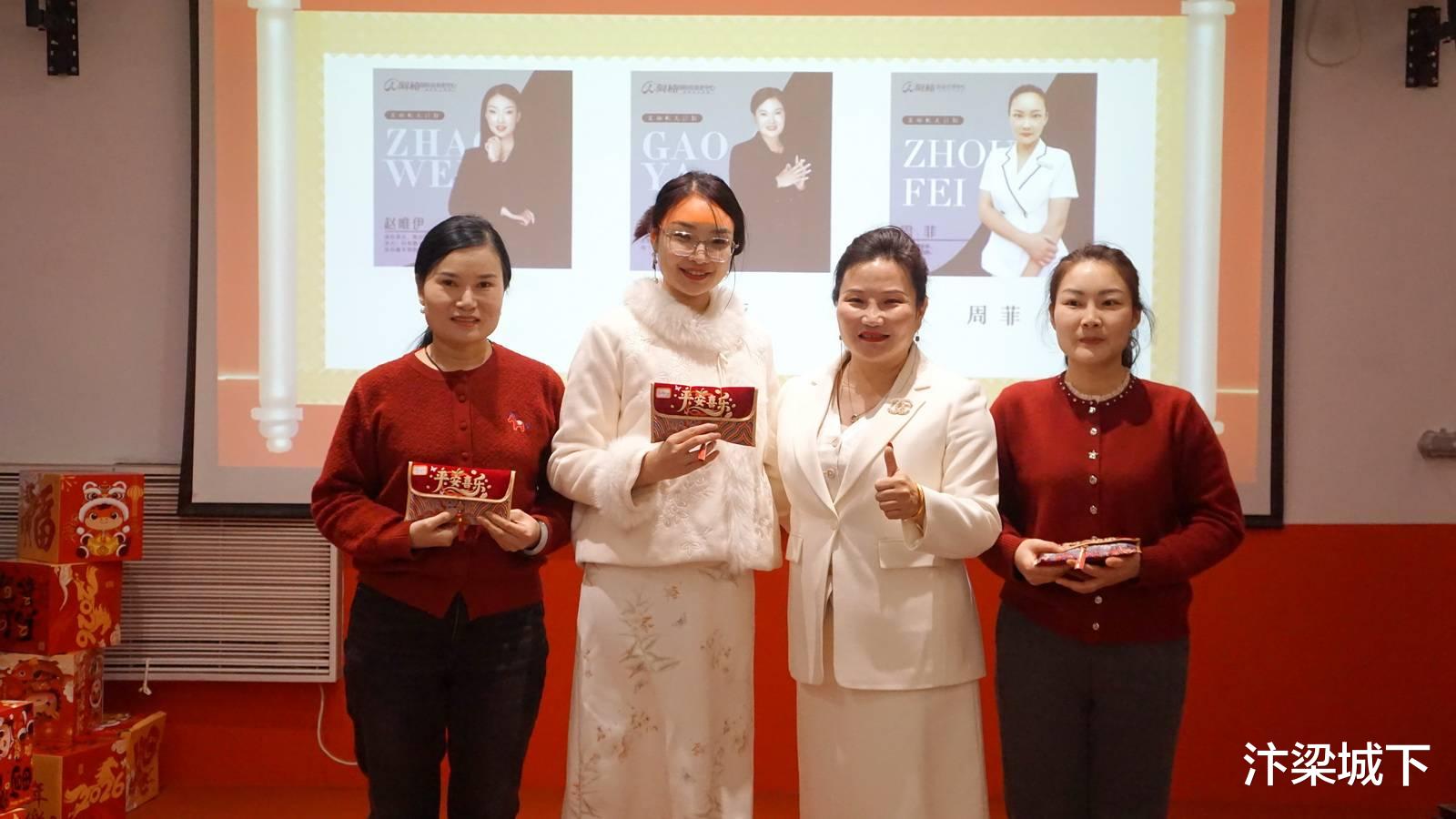 首先,开封阿楠美肤养生会所董事长李楠回顾了2025年团队建设、企业发展等情况,她说,感谢所有员工和家属在过去一年里,用双手传递健康,用真心守护美丽——是你们,让“传播健康、传播美丽、传播爱”的文化落地生根。今晚,我们不谈KPI,只聊家人情;不拼业绩单,只享此刻暖。在受到大形势制约下,阿楠逆势迎风,不断创造佳绩,企业得以壮大,员工整体收入大幅提高,成为行业翘楚。在新的一年里,希望全体员工众志成城,破除万难,乘胜追击,继续攀登顶峰。
