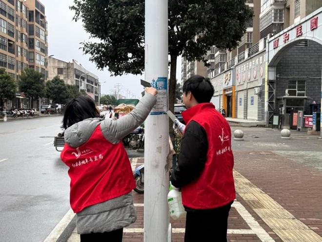 在红安县东风社区的街边小巷,一群身穿红马甲的志愿者正拿着铲刀、喷壶,细心清理墙面和电线杆上的“牛皮癣”。临近春节,返乡人员增多,市容环境直接关系归乡人员对家乡的第一印象。从1月中旬起,红安县烟草专卖局组织20余名党员干部成立志愿服务队,分片包干,对责任区域的小广告进行集中清理。