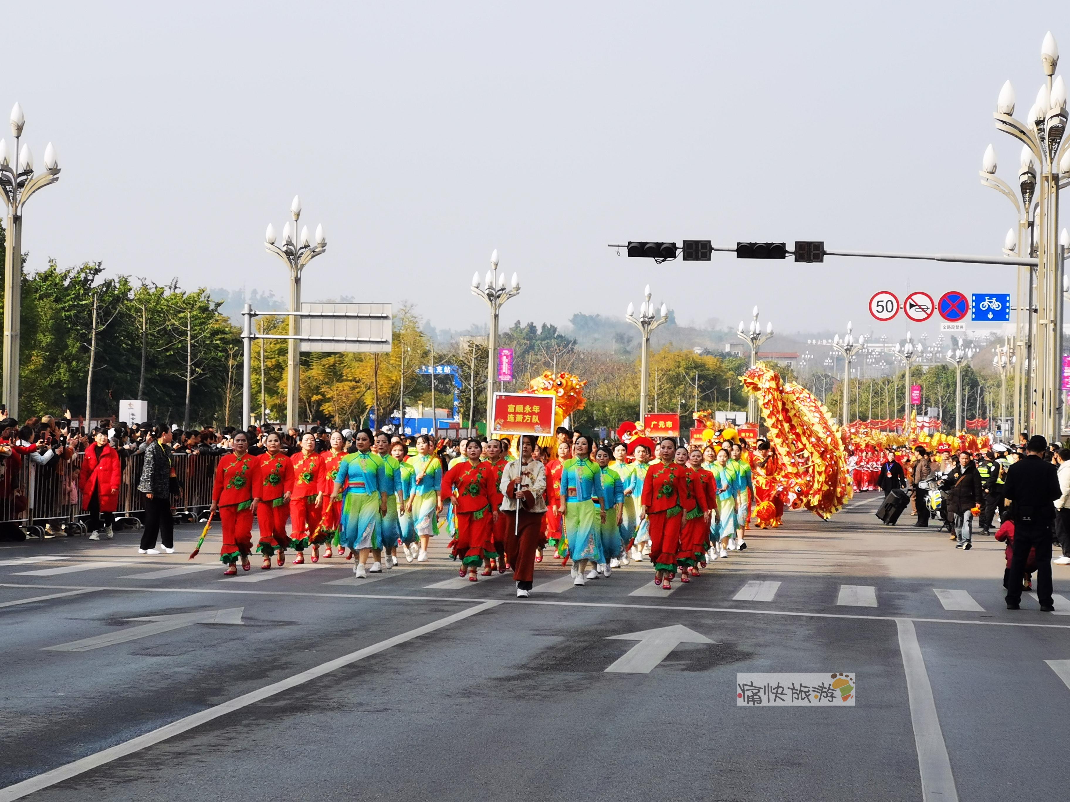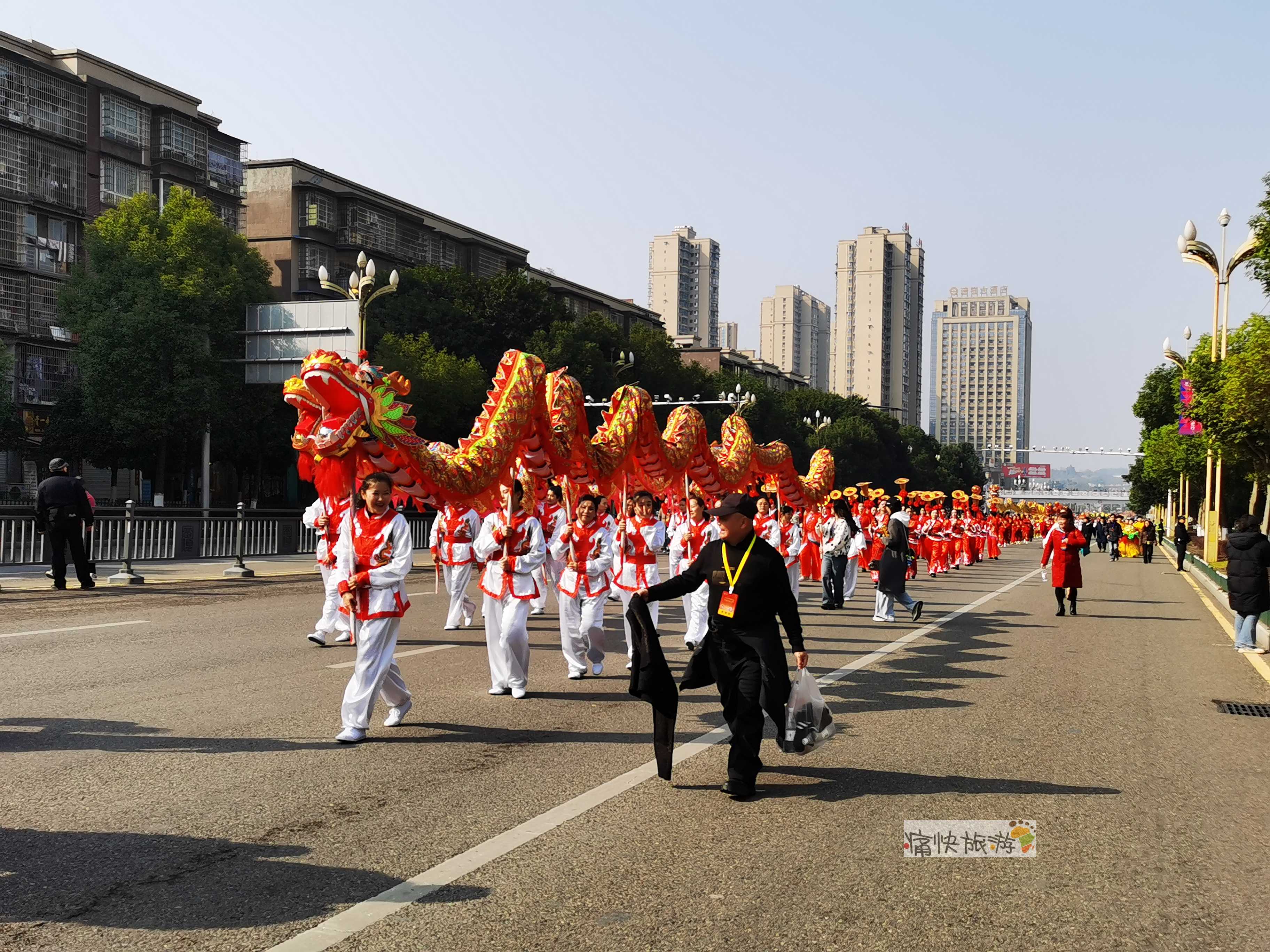 龙狮展演意犹未尽,民俗巡游再掀热潮。从自贡衡川实验学校出发,沿2.5公里线路行进至富顺县文体中心。